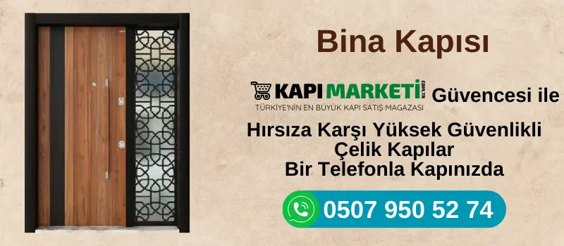 - Estetik: Bina kapısı, binanızın ilk izlenimini oluşturur. Şık bir kapı, mülkünüzün değerini artırır.